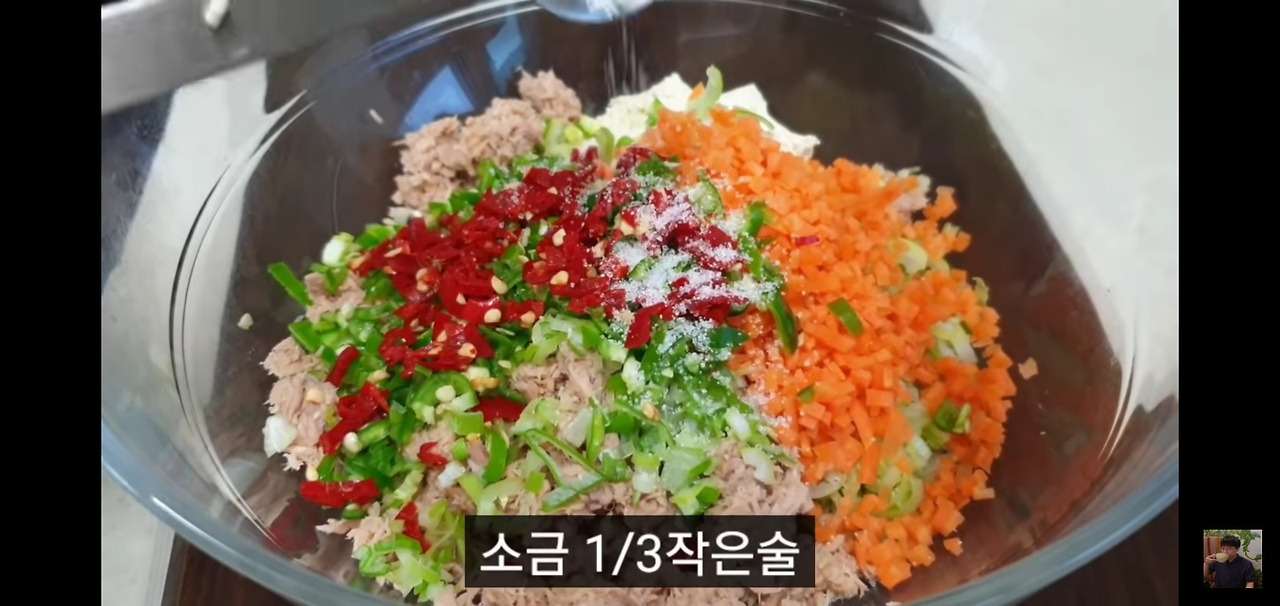 이제 섞어둔 두부와 참치에 준비한 재료들을 넣어주세요.