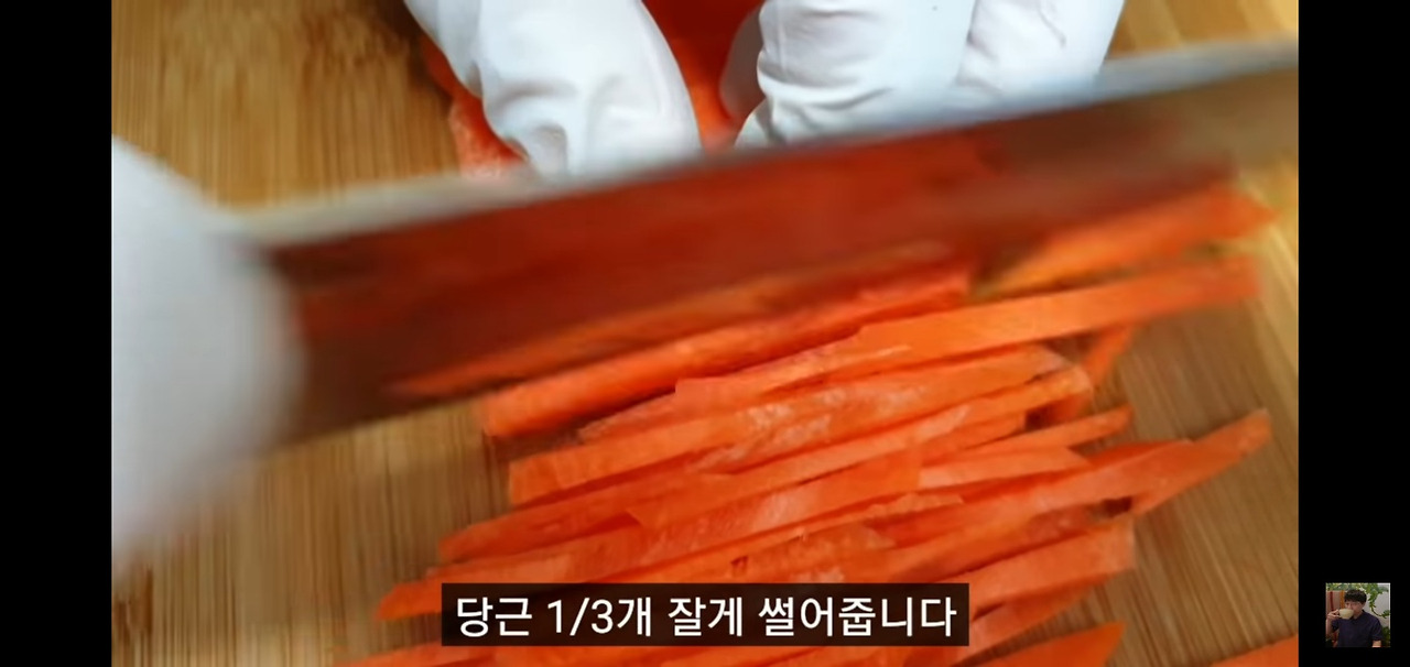 고추전에 색감과 맛을 더해줄 당근 1/3개를 잘게 썰어 주세요.