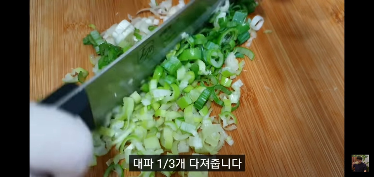 대파 1/3개도 양파와 함께 잘게 다져 주세요.