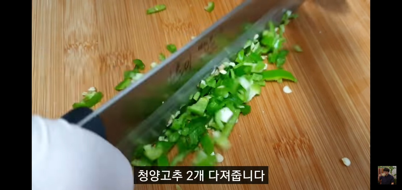 청양고추 2개도 작게 잘게 썰어 주세요.