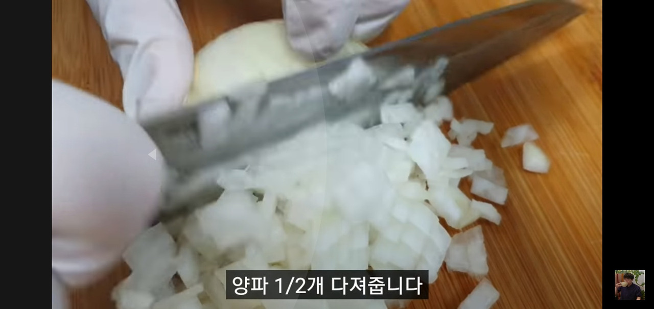 그 후, 양파 반 개를 잘게 다져 주세요.