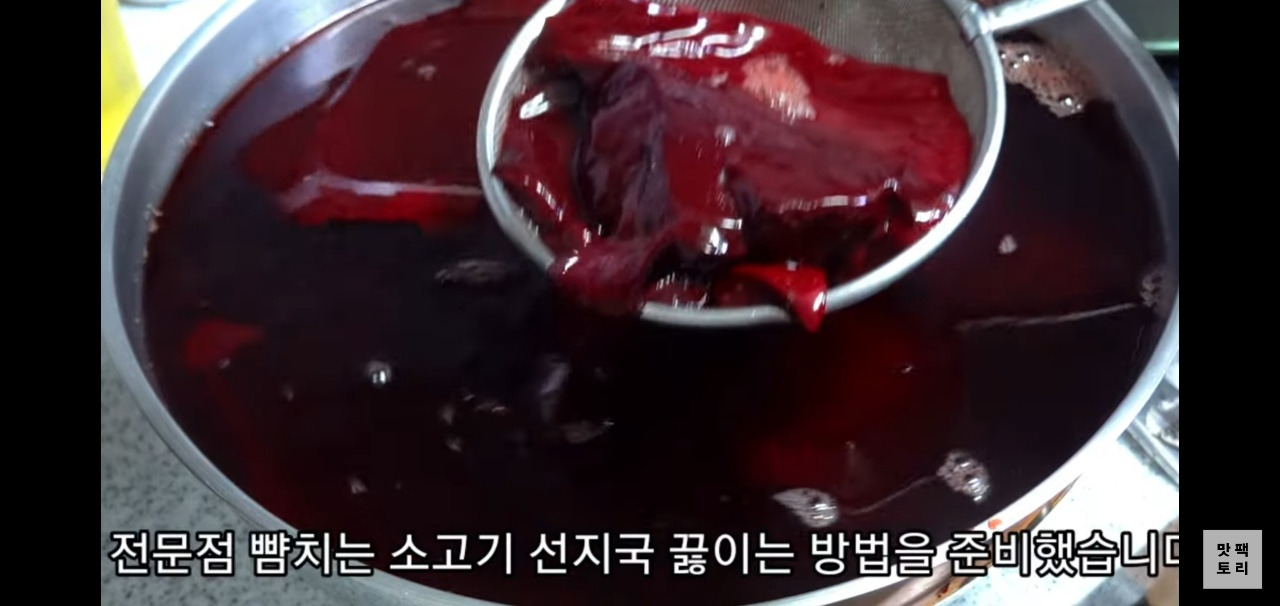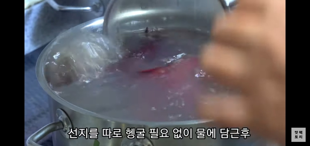 먼저 선지국을 만들기 위해 선지를 한번 익혀볼까요?