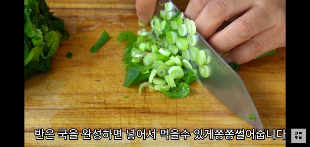 이제 썰어둔 대파와 고추를 넣고 불을 끄면, 오늘의 선지국 만들기가 완성됩니다!