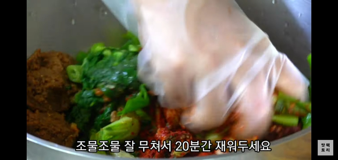 이 상태에서 잘 버무려 20분 이상 재워두면 양념이 깊게 스며들어 더 맛있게 완성된답니다!