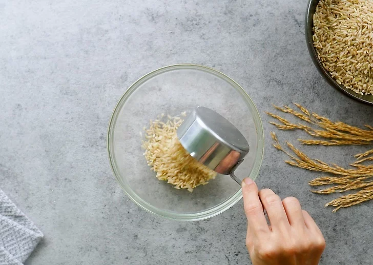 1. 먼저 현미를 깨끗이 씻은 후, 물과 현미의 비율을 약 1:1.2 정도로 맞춰주세요. 예를 들어, 현미 2컵을 사용할 경우 물은 약 2컵 반 정도가 적당해요.