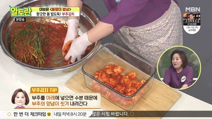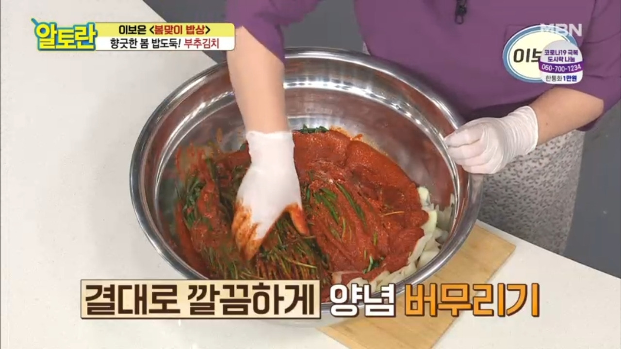 14. 마지막으로 남은 양념을 부추 위에 골고루 펴 발라주면, 이보은 셰프의 황금 레시피로 맛있는 부추김치가 완성됩니다!