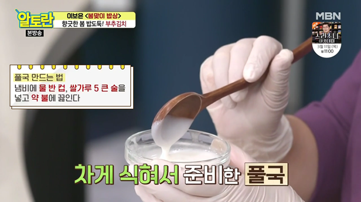 풀국 재료 : 물 반 컵, 쌀가루 5 큰 술