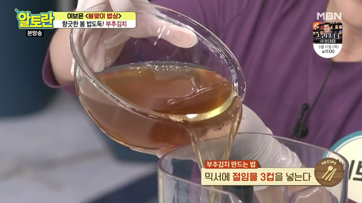 절임물 재료 : 물 1컵, 멸치액젓 1컵, 매실청 1컵