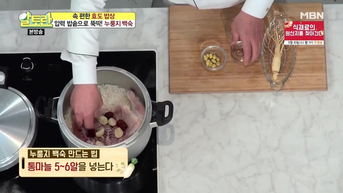 누룽지를 더욱 바삭하게 즐기고 싶다면, 죽을 덜어낸 뒤 누룽지만 따로 한 번 더 익혀도 좋습니다. 압력솥으로 만드는 닭백숙 황금 레시피, 생각보다 간단하죠?