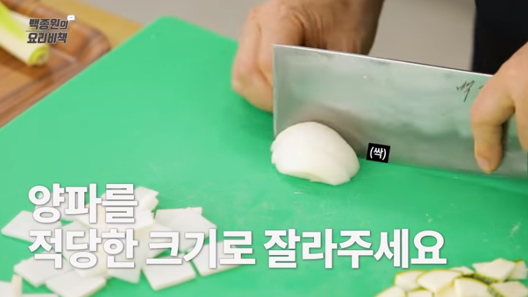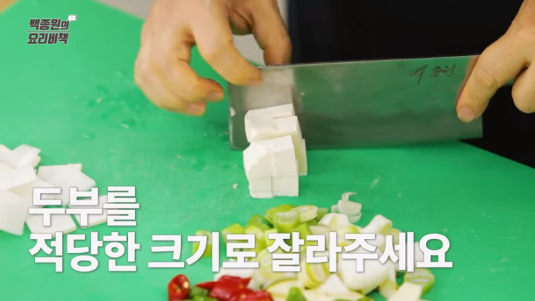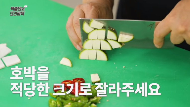 4. 돼지호박, 양파, 두부는 먹기 좋은 크기로 썰어줍니다.