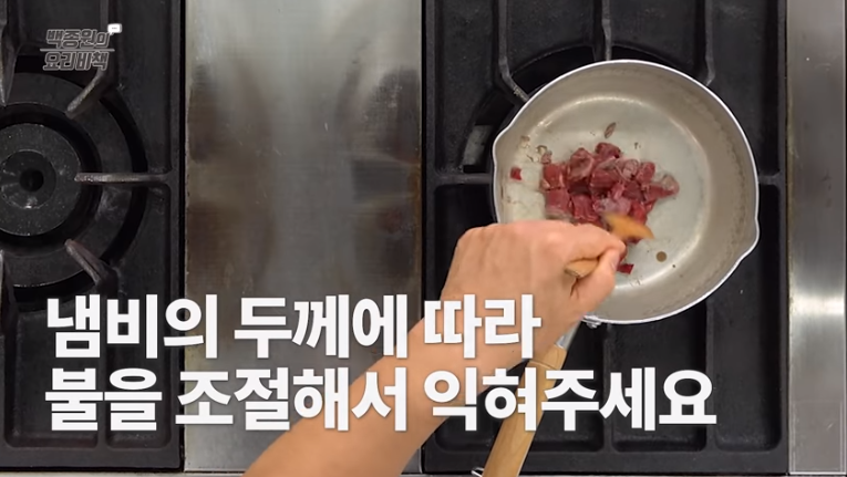 1. 된장찌개를 맛있게 끓이기 위해, 먼저 냄비에 소고기를 넣고 충분히 볶아줍니다.