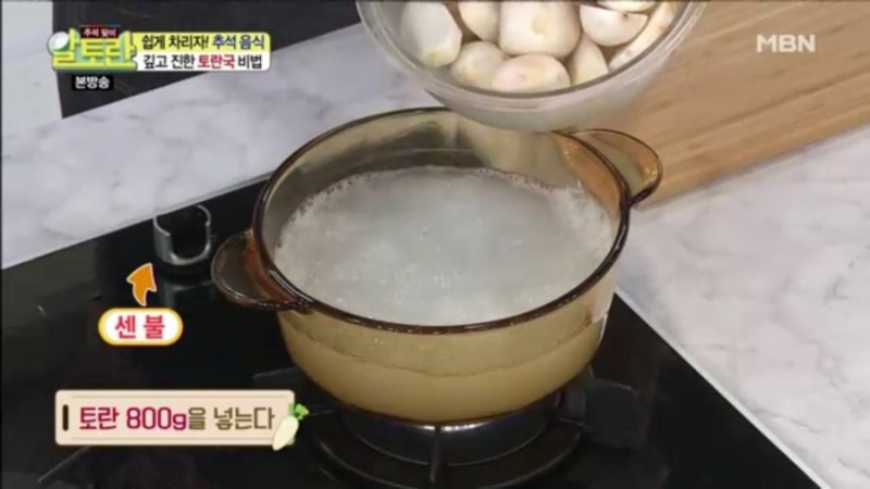 토란국은 오랜 시간 끓여야 깊고 진한 맛이 우러난다고 합니다. 충분히 끓인 뒤, 국간장 2큰술, 멸치액젓 1큰술, 꽃소금 1큰술, 후춧가루를 적당히 넣어 취향에 맞게 간을 맞추면, 토란국을 맛있게 끓이는 김하진 셰프의 황금 레시피가 완성됩니다.