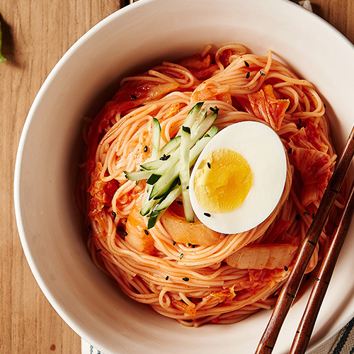 9. 마지막으로 기호에 따라 양파나 대파를 송송 썰어 넣거나, 계란을 부쳐 채 썰어 올리면 한층 더 맛있는 비빔국수를 즐기실 수 있습니다.