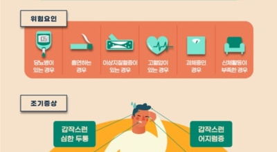 뇌졸중 - 뇌에 혈액을 공급하는 혈관이 막히거나 터져 뇌 손상을 일으키는 상태