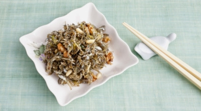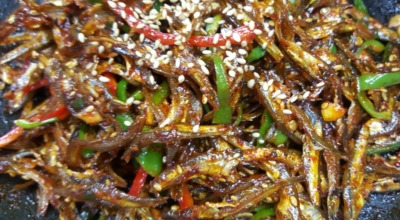 멸치: 200g, 고추장: 3 큰 술, 마늘: 3 쪽, 식용유: 2 큰 술, 설탕: 1 작은 술, 참기름: 1 작은 술